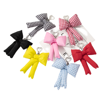 بيع بالجملة حلقة مفاتيح القوس Preppy متقلب Bowknot منتفخ لطيف الشريط منقوشة نمط Coquette سلسلة المفاتيح للمحفظة الكلاسيكية